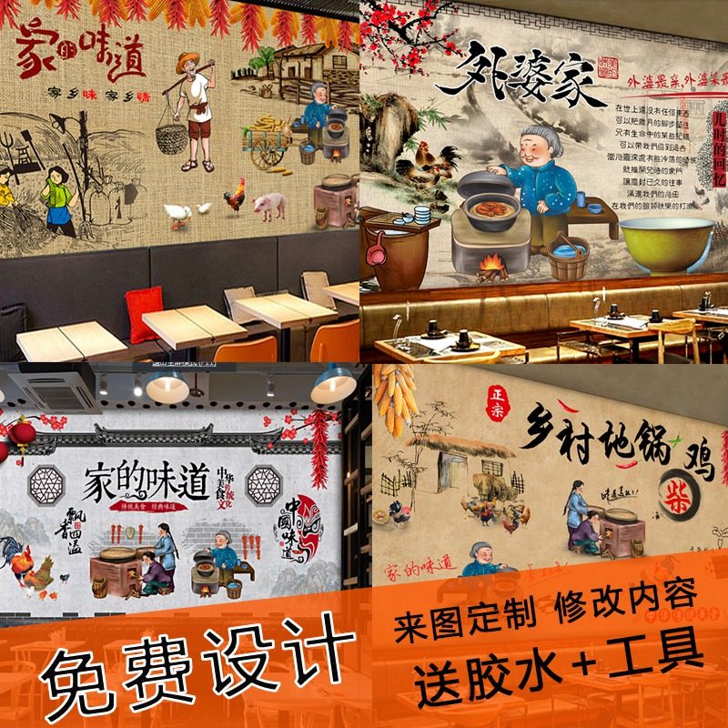 东北菜馆墙纸壁纸家的味道壁画餐厅背景农家乐地锅鸡装修墙布壁布