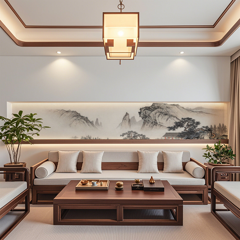 新中式古典长条腰线宋式美学中古风定制画芯图库墙布壁画墙纸壁纸