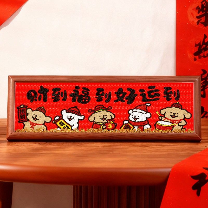 2026新款钻石画可爱狗狗满钻客厅玄关手工点贴钻十字绣装饰画带框