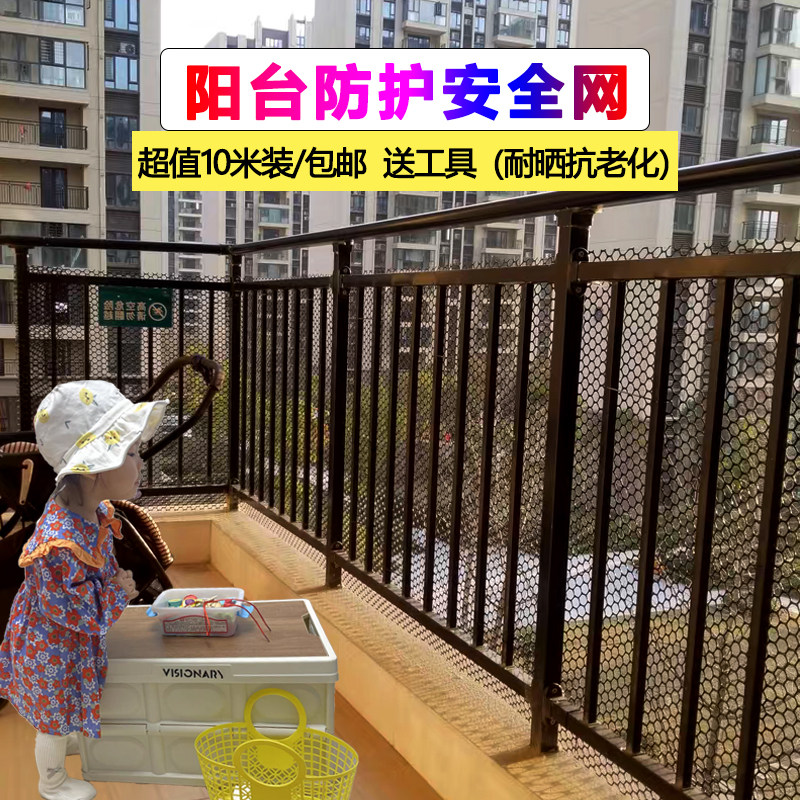 阳台防护网封阳台神器q猫窗宠物防坠围栏儿童安全护栏塑料网格黑