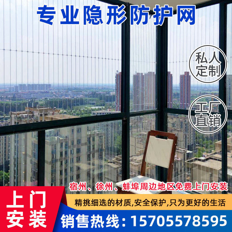 徐州连廊铝合金阳台窗户不锈钢丝隐形防护网家用儿童安全护栏网宿