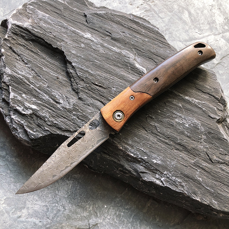 大马士革钢刀正品户外折叠刀锻打小刀锋利高硬度折刀花纹钢水果刀