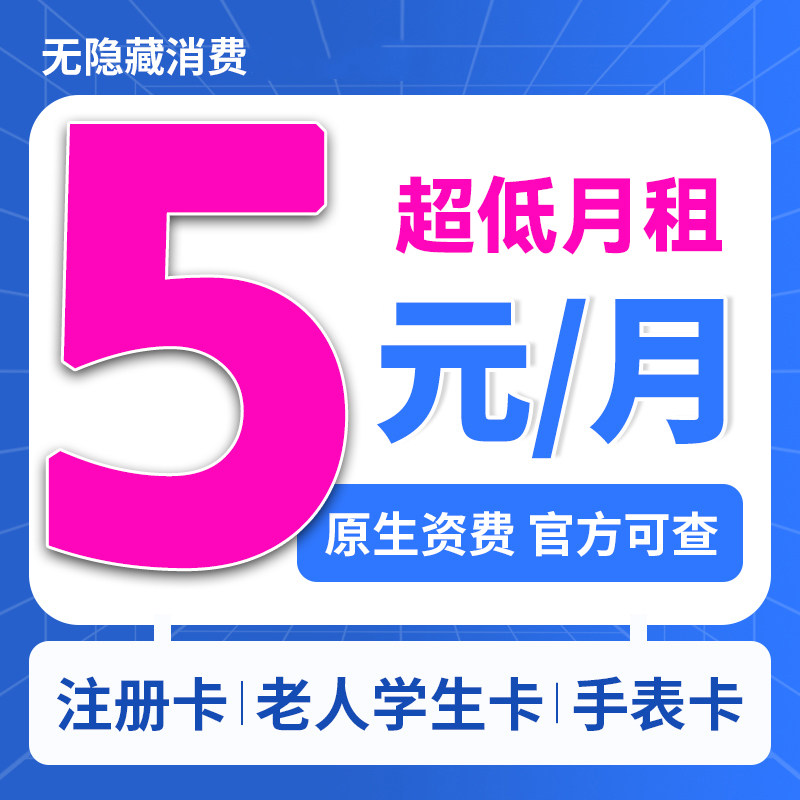 低月租卡5元无忧卡手机号低月租电话卡儿童手表电话卡5G流量卡