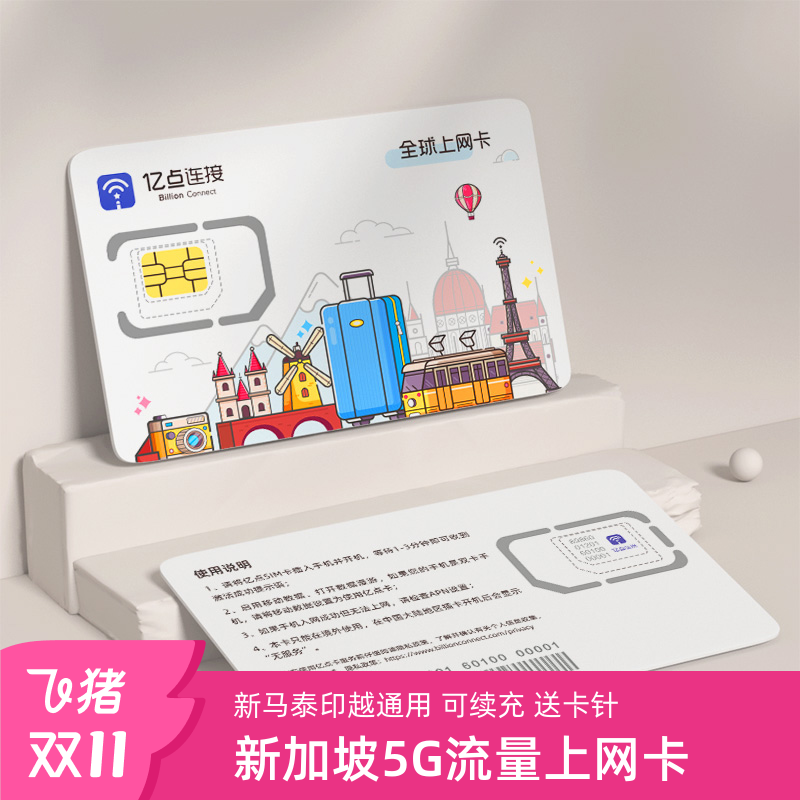 新加坡流量上网卡5G高速网络电话卡旅游sim卡新马泰印多国通用