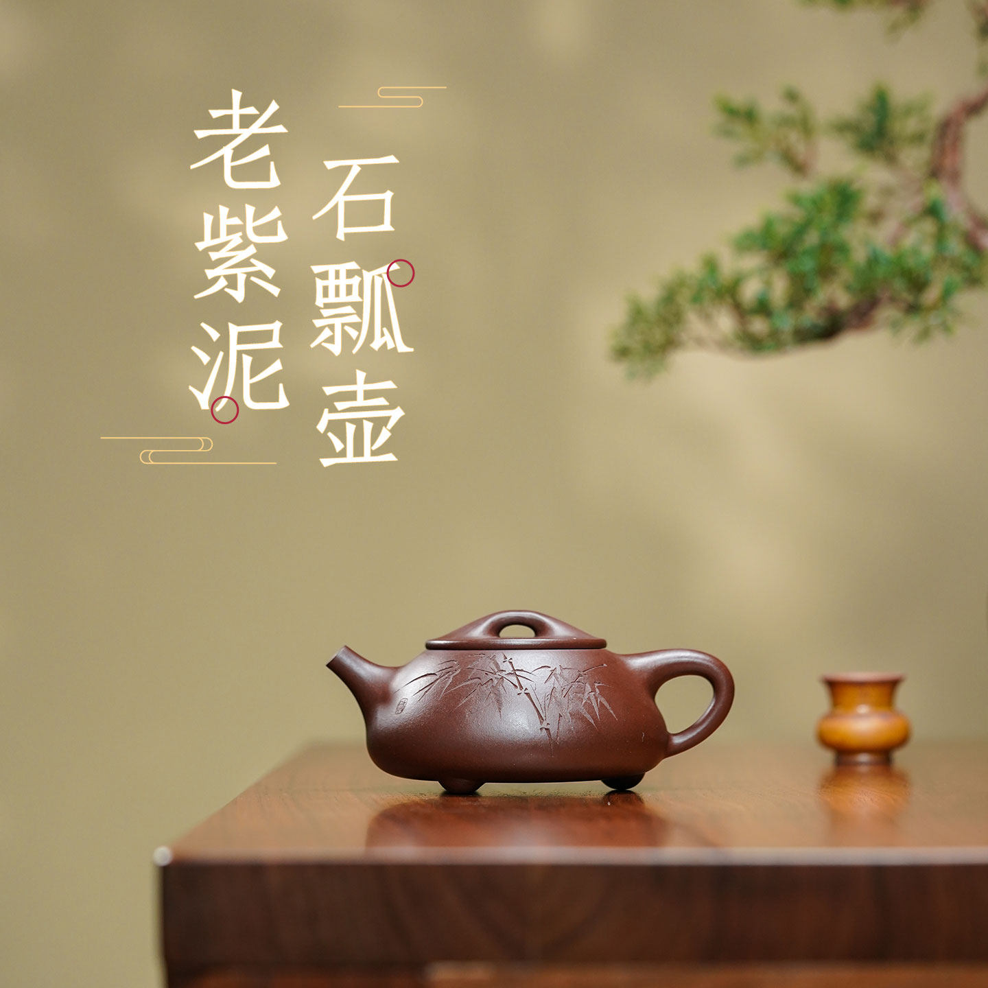 紫砂壶原矿紫泥石瓢刻字小号家用中式复古泡茶功夫茶具半手工黑陶
