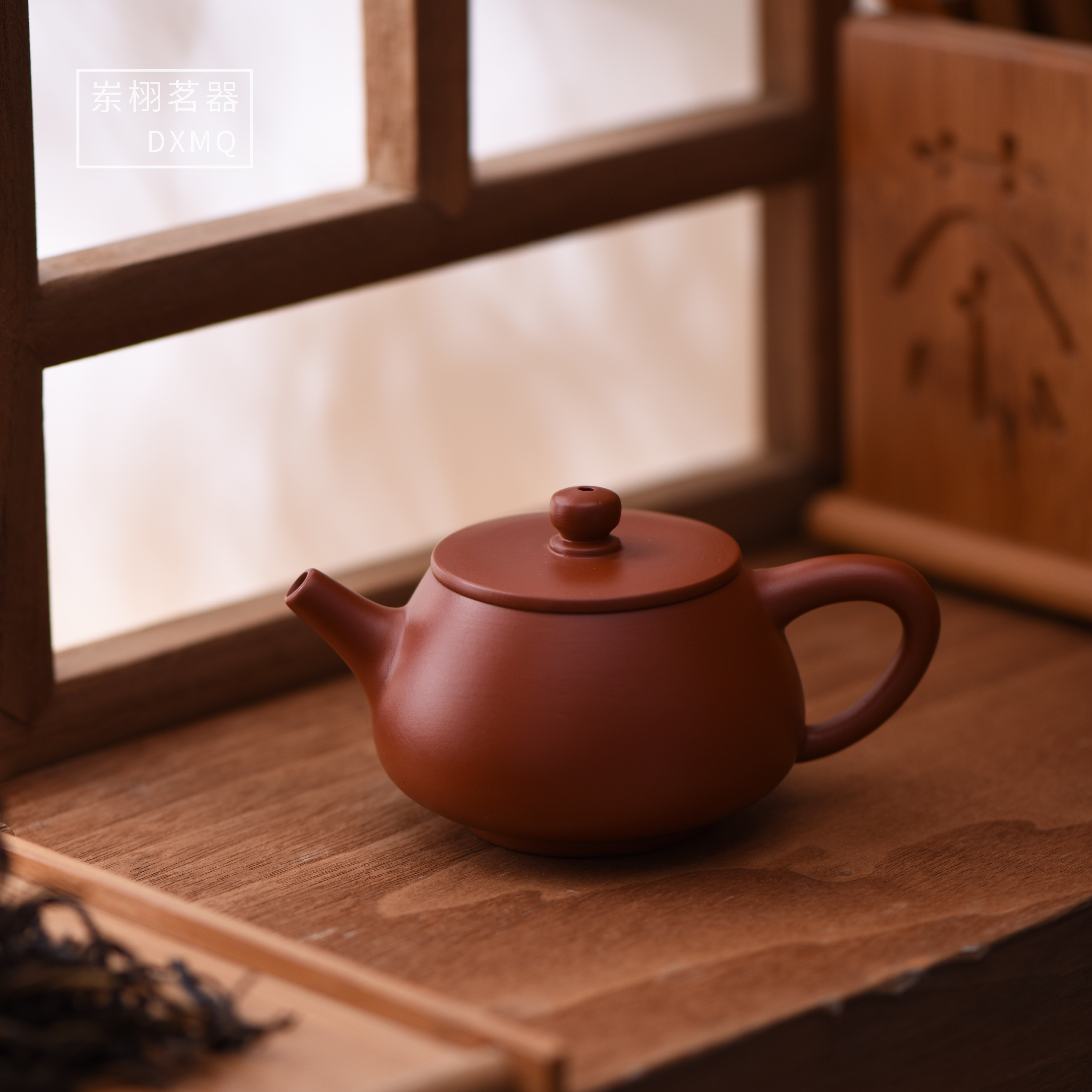 石瓢壶潮州手拉壶原矿100cc紫砂朱泥壶手工家用小容量工夫茶壶