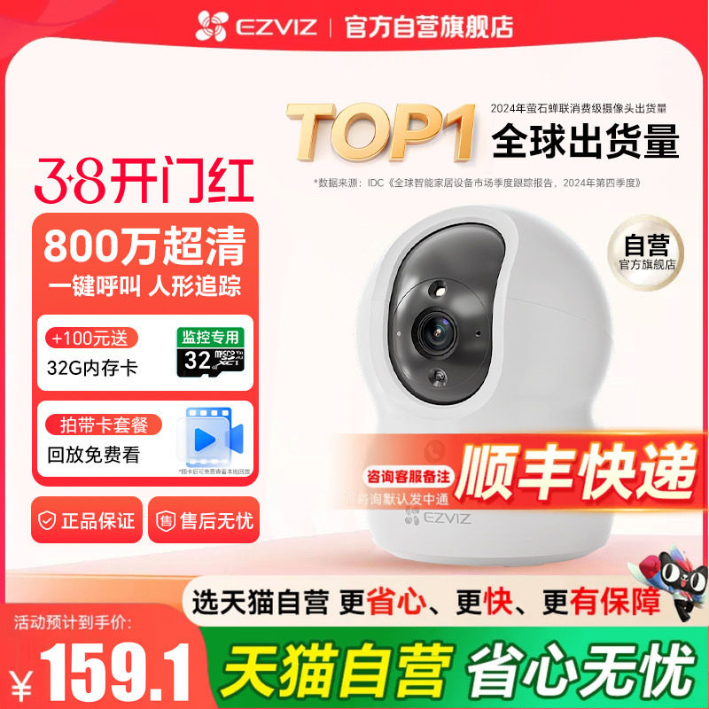 萤石摄影头监控家用远程手机无线室内家庭莹石云摄像头官方旗舰店