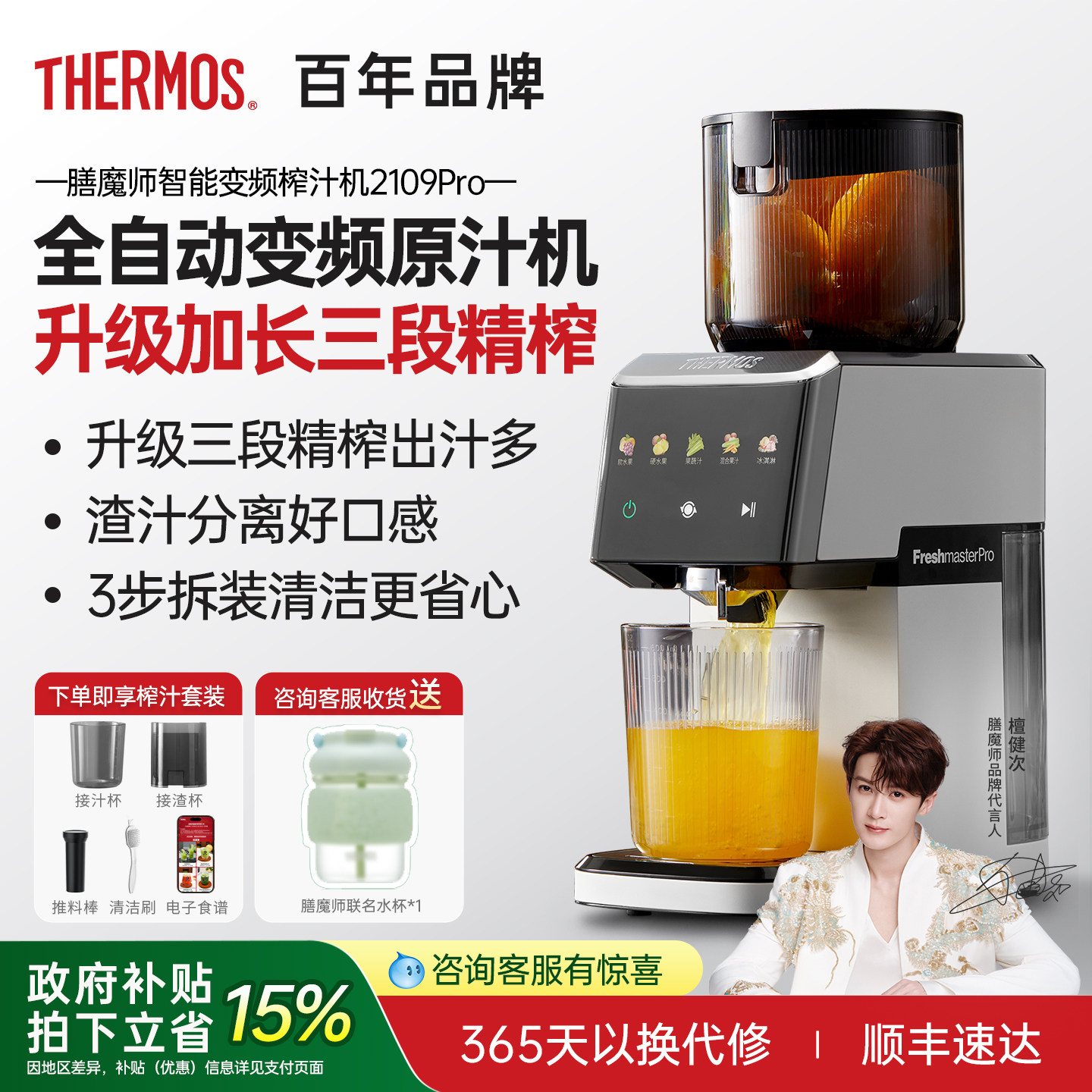 膳魔师原汁机榨汁机渣汁分离家用小型全自动鲜榨果蔬NFC果汁机