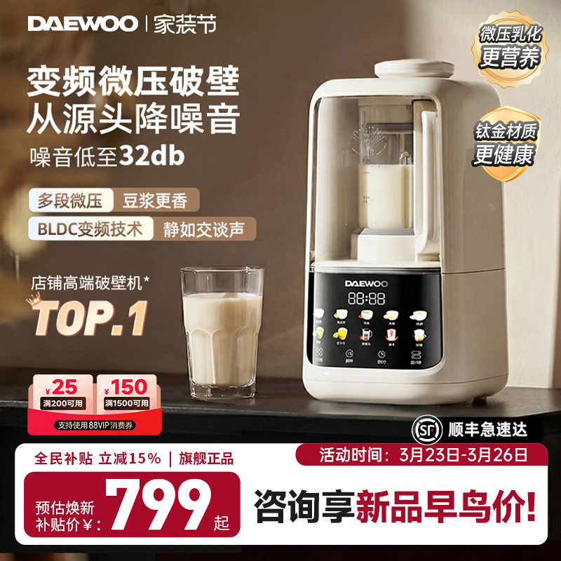 大宇云境变频无刷破壁机豆浆机家用全自动轻音无渣五谷杂粮榨汁机