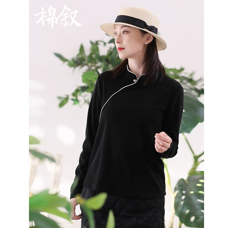 棉叙新中式加厚德绒打底衫女士长袖冬款T恤老钱风上衣23655