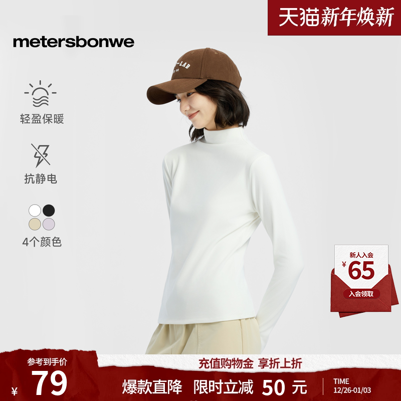 美特斯邦威长袖T恤女士2025秋冬款半高领长袖抗菌内搭打底衫毛衣