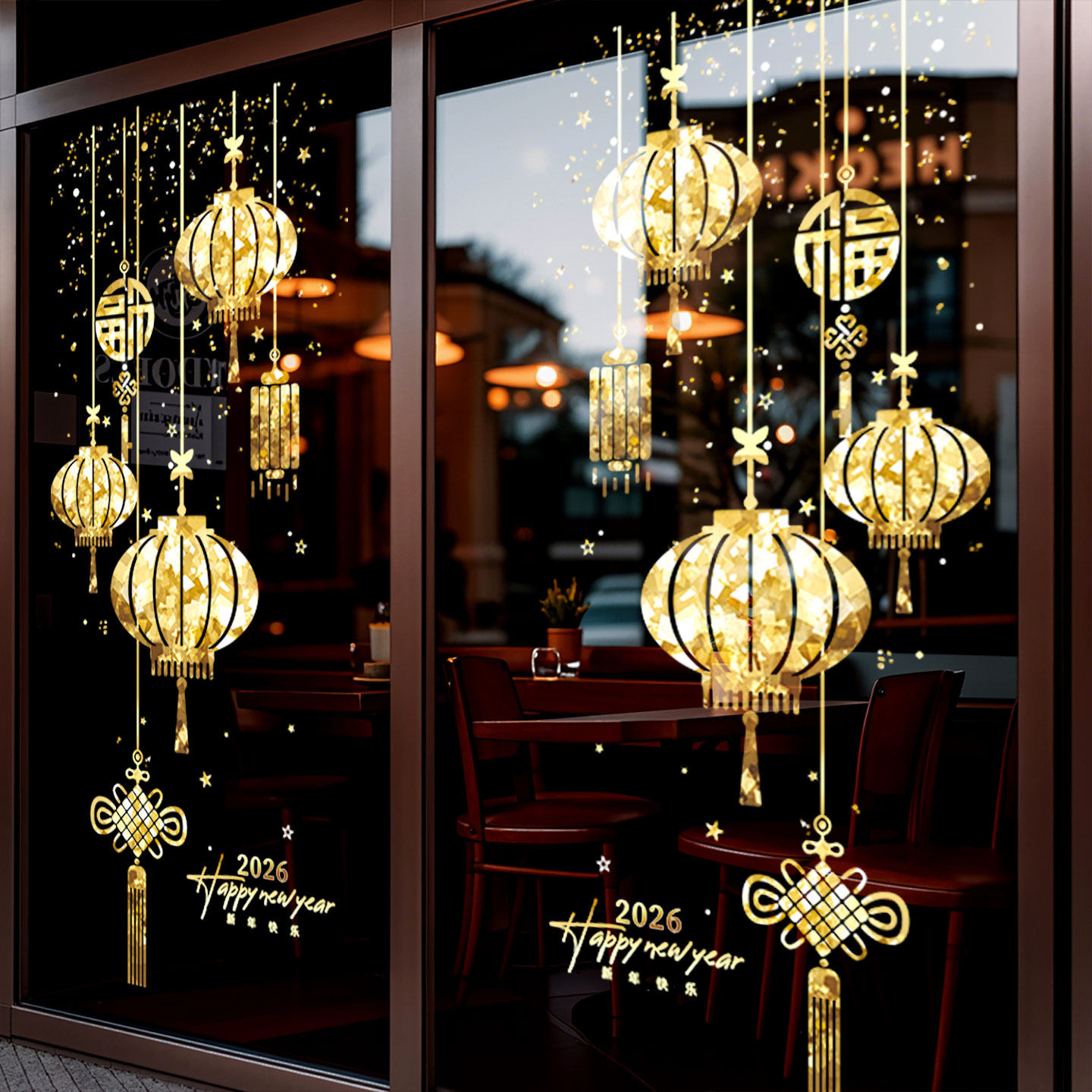 新年装饰灯笼窗花马年场景布置节日2026开业橱窗户静电玻璃门贴纸