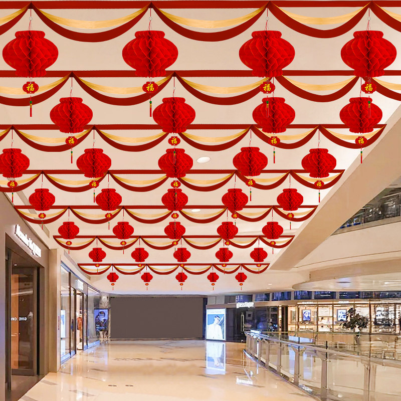 新年灯笼装饰挂饰春节蜂窝大红灯笼吊饰商场活动氛围场景布置用品