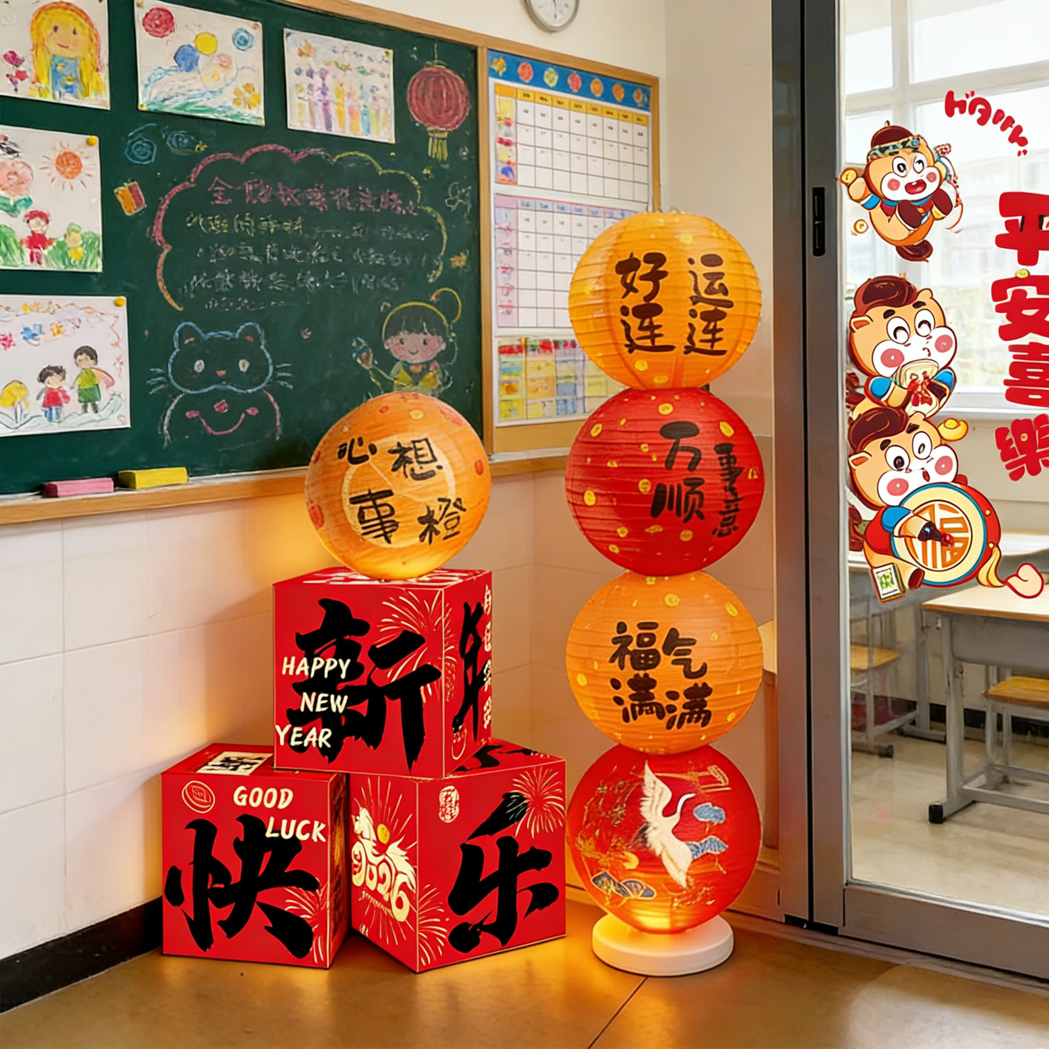 2026新年学校幼儿园教室装饰灯笼堆头盒摆件元旦联欢会场景布置品