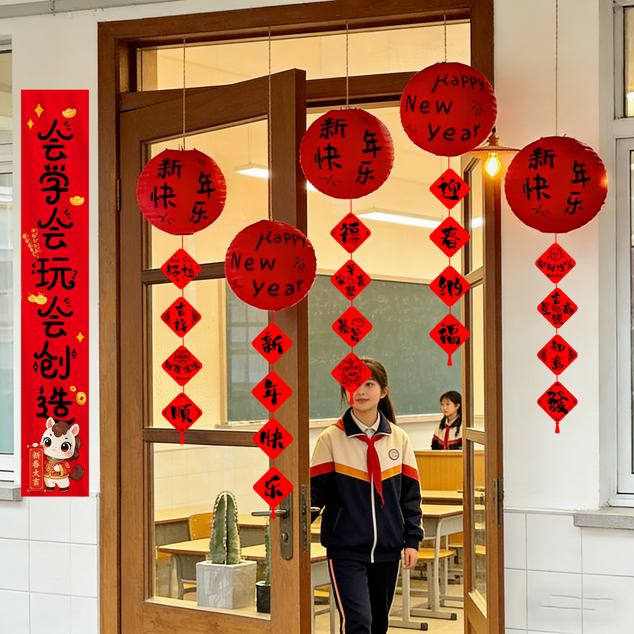 2026元旦新年快乐学校幼儿园教室走廊装饰灯笼挂件氛围场景布置品