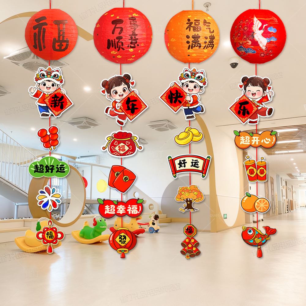 元旦幼儿园新年装饰品灯笼吊饰教室门店春节过年氛围场景布置挂件