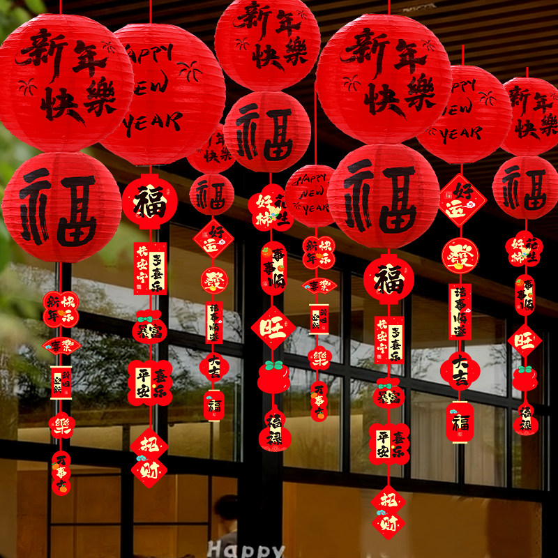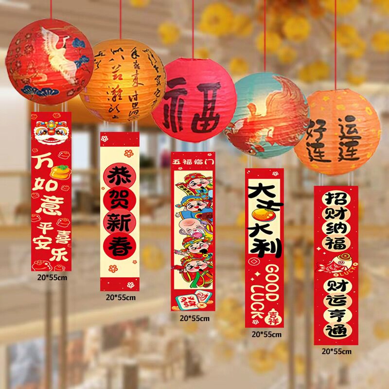 幼儿园元旦新年装饰灯笼挂饰福字条幅商场公司年会春节氛围挂布置
