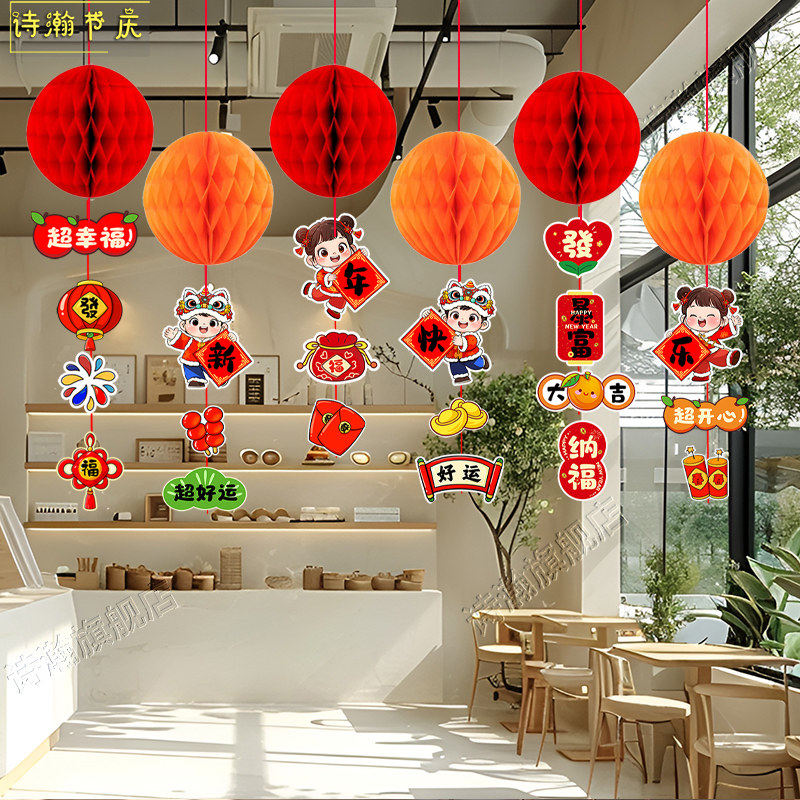 元旦新年节店铺灯笼吊顶挂件氛围场景装饰商场珠宝店挂饰超市布置