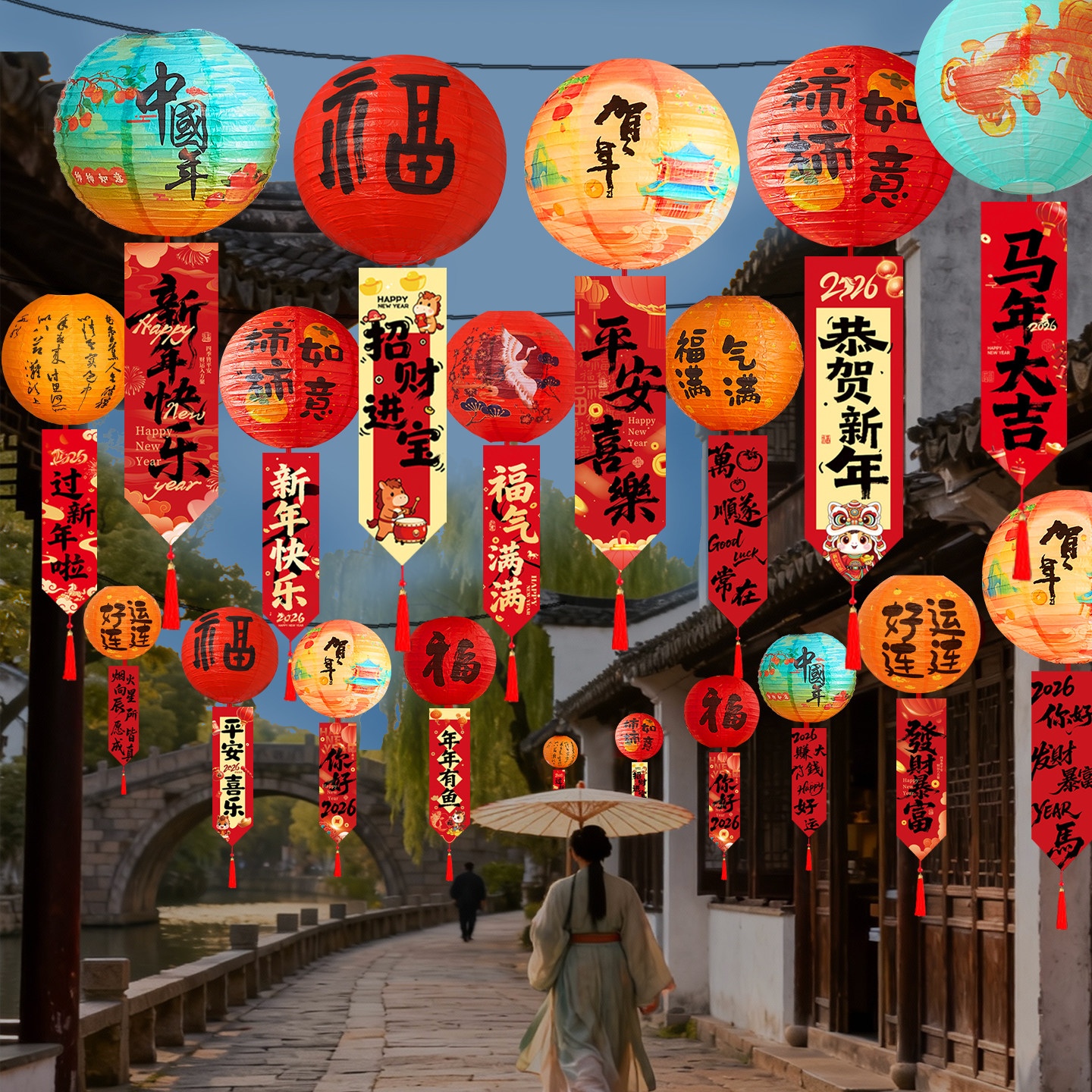 新年装饰灯笼挂饰2026马年春节元旦店铺民宿农村院子装饰场景布置
