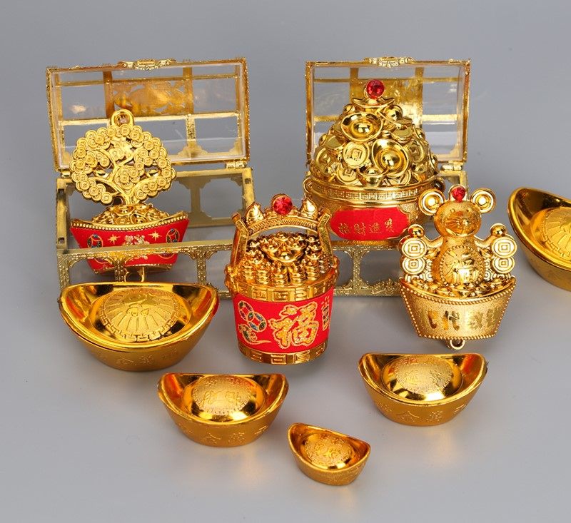 生日蛋糕装饰灯笼宝箱聚宝盆发财神红色鲤鱼金元宝鼠年元宝鼠摆件
