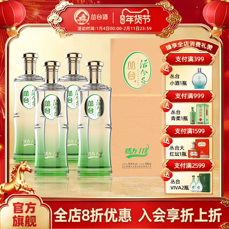 【年货节】丛台活力118活分子酒38.8度白酒浓香型酒4瓶整箱礼盒装