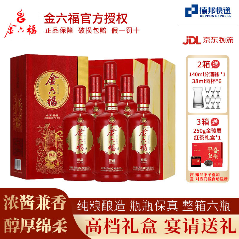 金六福白酒 52度浓香型酒白酒整箱纯粮食口粮酒婚宴喜酒官方正品