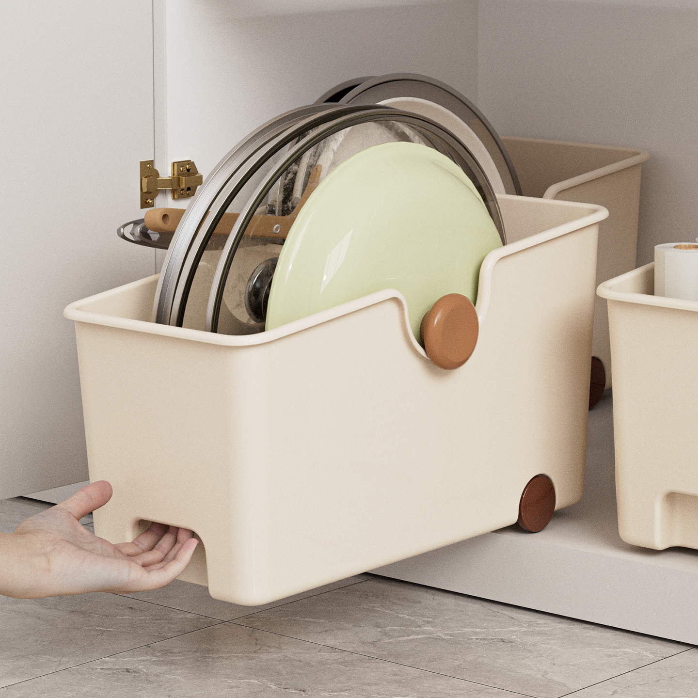 厨房收纳盒橱柜杂物收纳架带滑轮调味料零食筐滚轮锅架锅具置物架