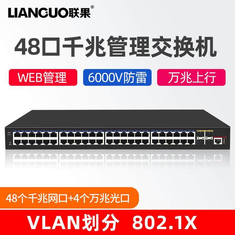 联果 48口千兆网口4个万兆光口三层管理型核心交换机VLAN环网汇聚
