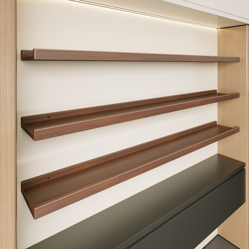 北美SUP级樱桃木/黑胡桃木一字隔板置物架原木客厅书房餐厅可定制