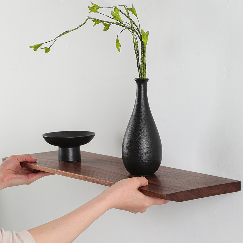 沐里一叶搁板黑胡桃樱桃实木日式原木一字隔板置物架墙上简约现代