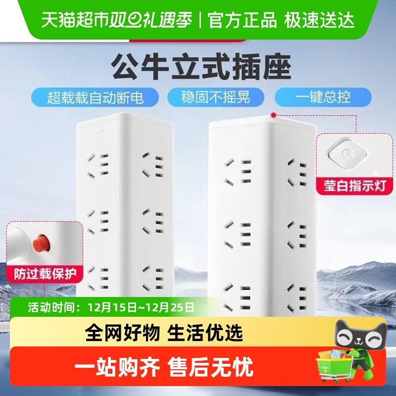 公牛立式插座多功能插排接线板家用插线板宿舍一转多孔位插头厨房