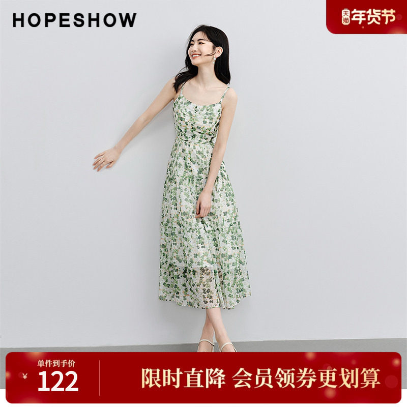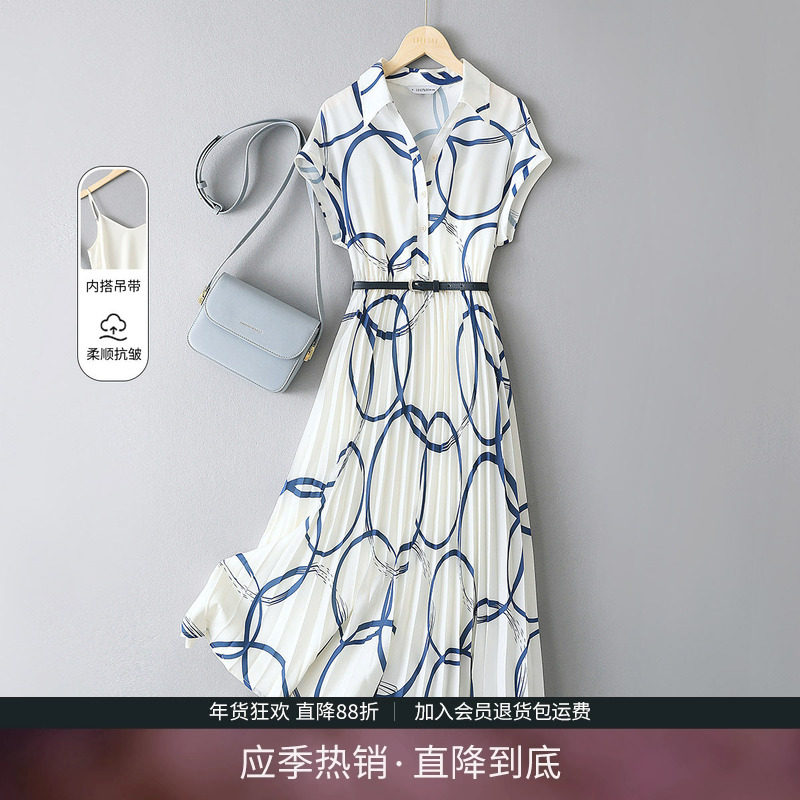IHIMI海谧雪纺印花连衣裙女士2025夏季新款长裙收腰显瘦气质裙子