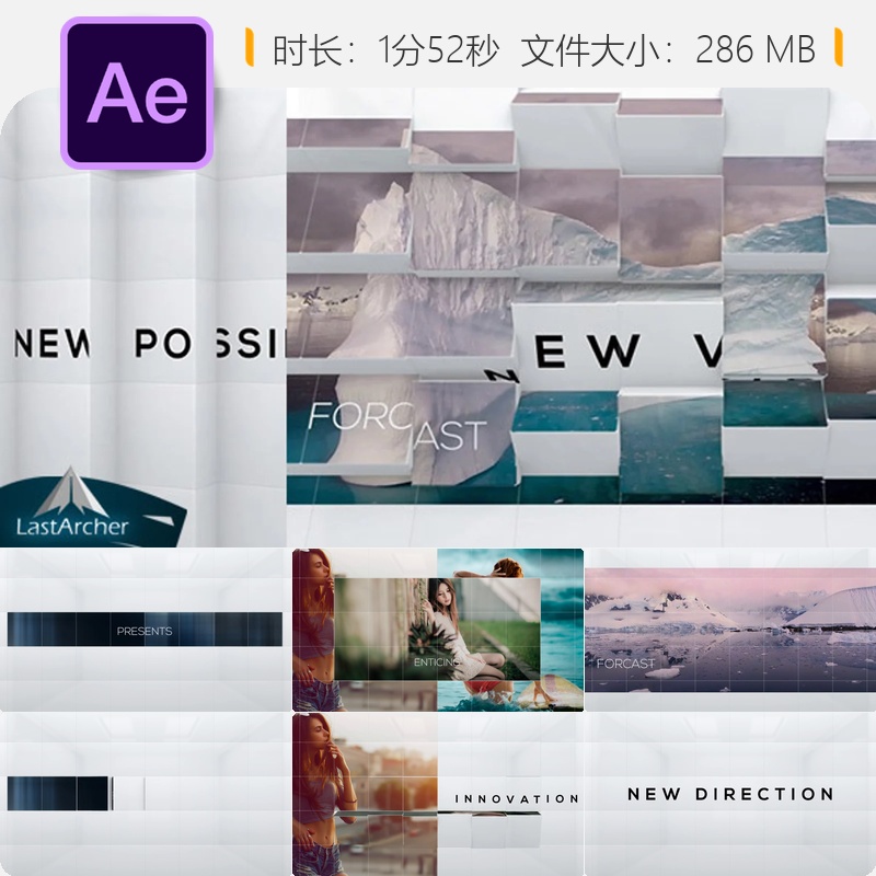 AE模板3D方块简洁幻灯片展示优雅企业视频制作白色创意动画设计