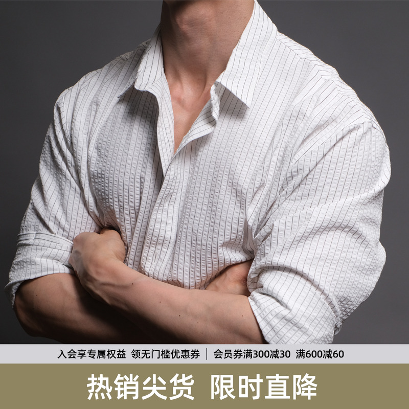 泡泡纱 BD健美站老钱风白色长袖健身衬衫男士黑色休闲意式衬衣男