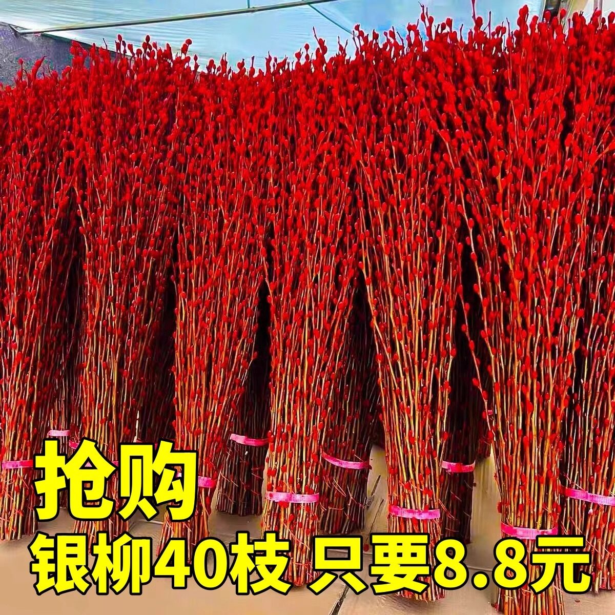 银柳干花真花鲜枝水培植物红色银柳年宵花卉福桶客厅室内装饰干花