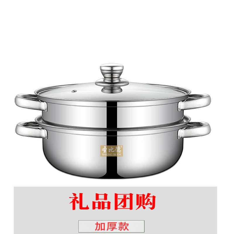 圣比德不锈钢汤蒸锅 28cm双层加厚蒸汤锅 电磁炉通用节能锅多用锅