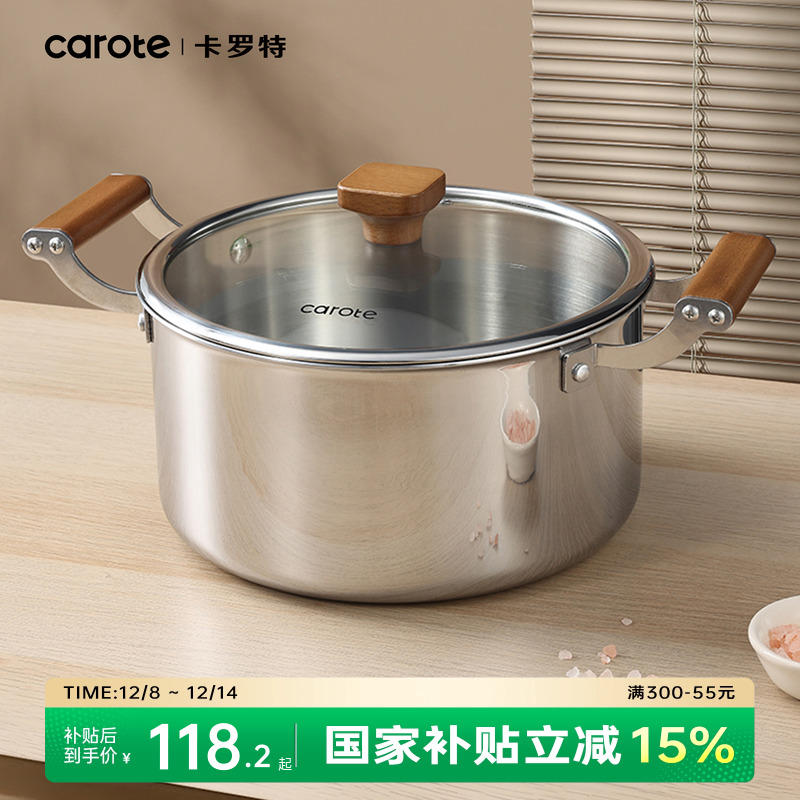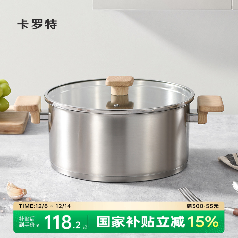 卡罗特汤锅316L不锈钢家用木柄煮锅蒸煮炖锅无涂层燃气电磁炉通用