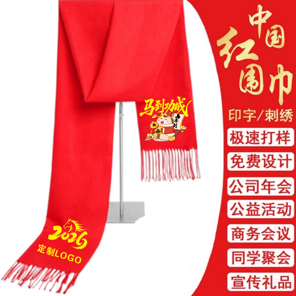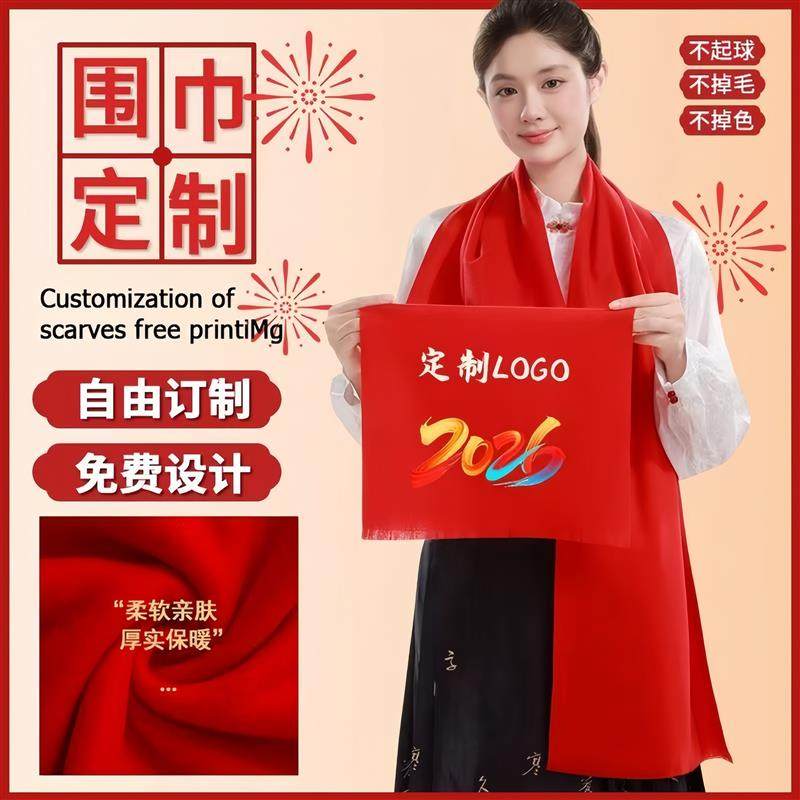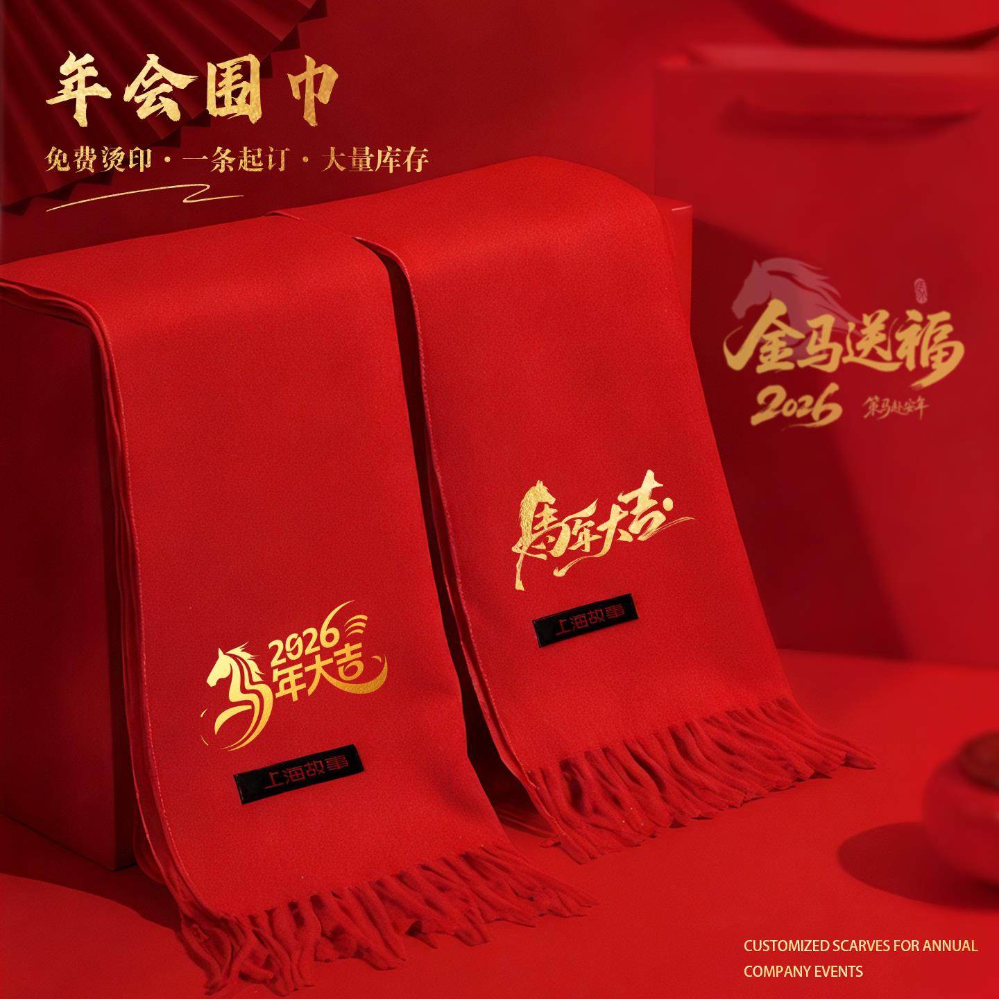 红围巾定制2026马年新款中国红年会围巾印字刺绣logo公司聚会活动