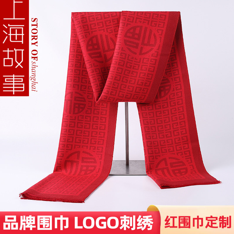 上海故事红围巾中国红年会围巾定制logo企业活动同学聚会红围巾