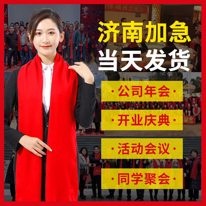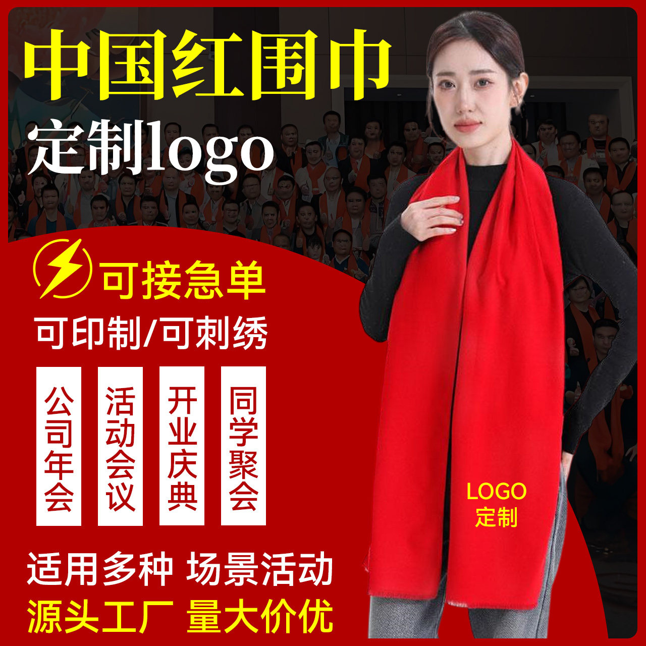 中国红年会围巾定 制刺绣l同学聚会开业活动会议大红围巾印字logo