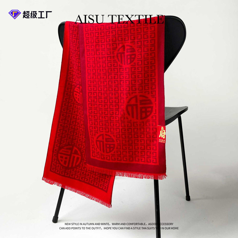 福字大红色中国红年会围巾男女冬季围脖中老年人生日本命年送礼品