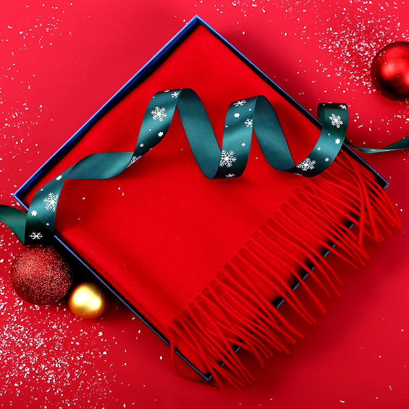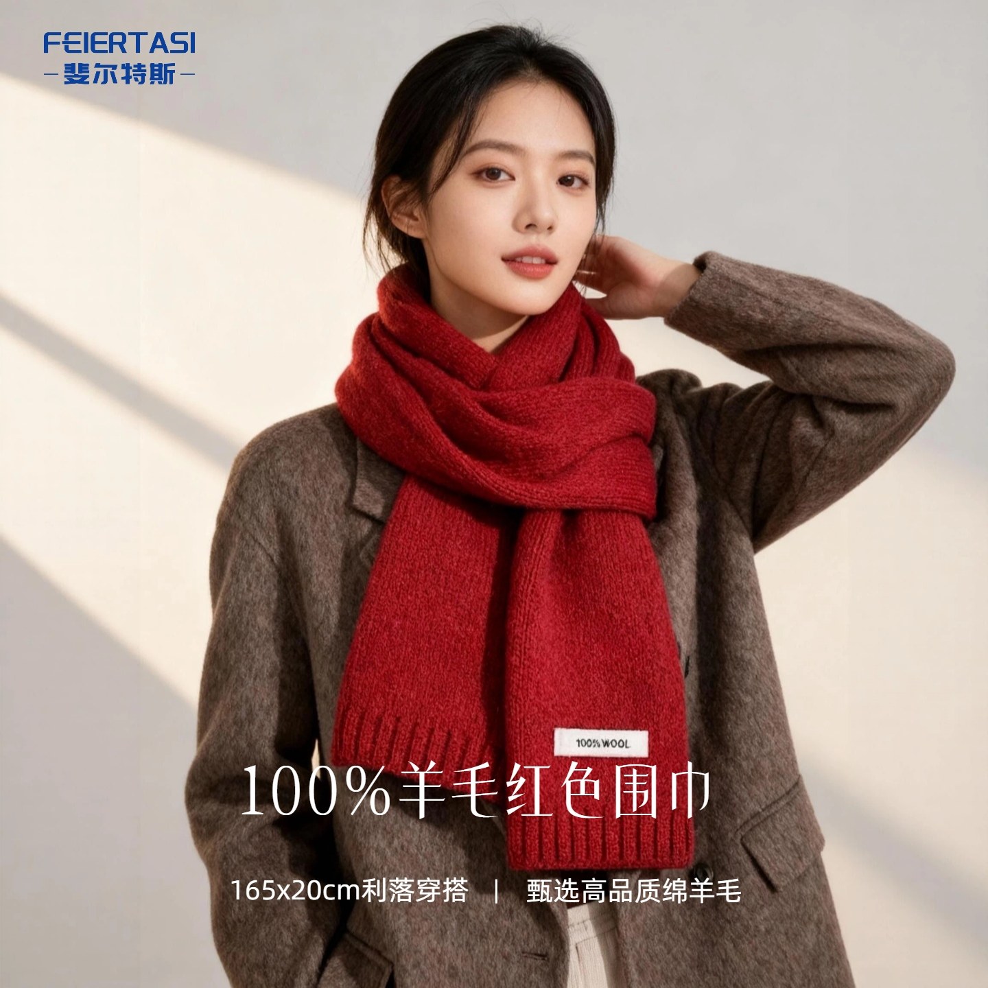 2026新款100%纯羊毛围巾红色本命年男女通款秋冬年会围巾礼盒