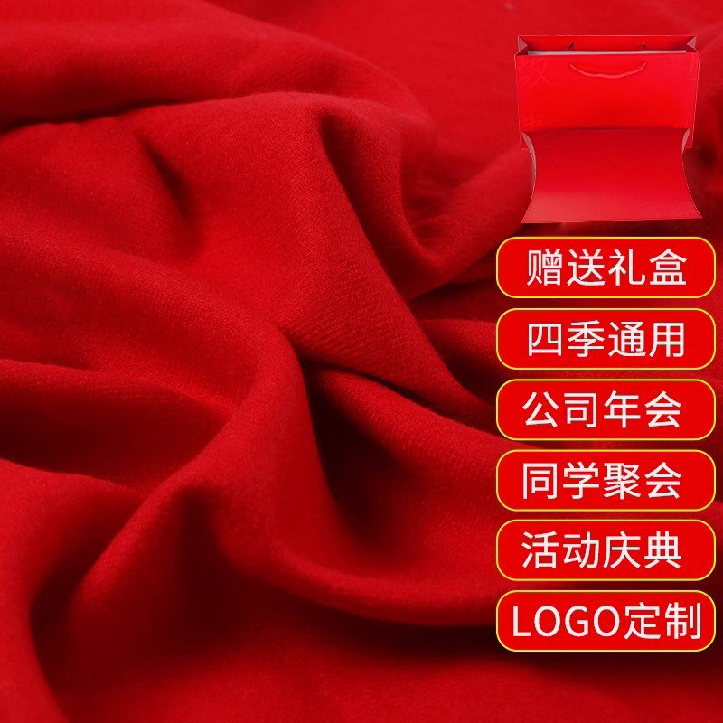大红色围巾女冬季流苏年会礼品活动印字logo定制披肩红围巾中国红