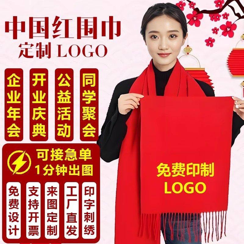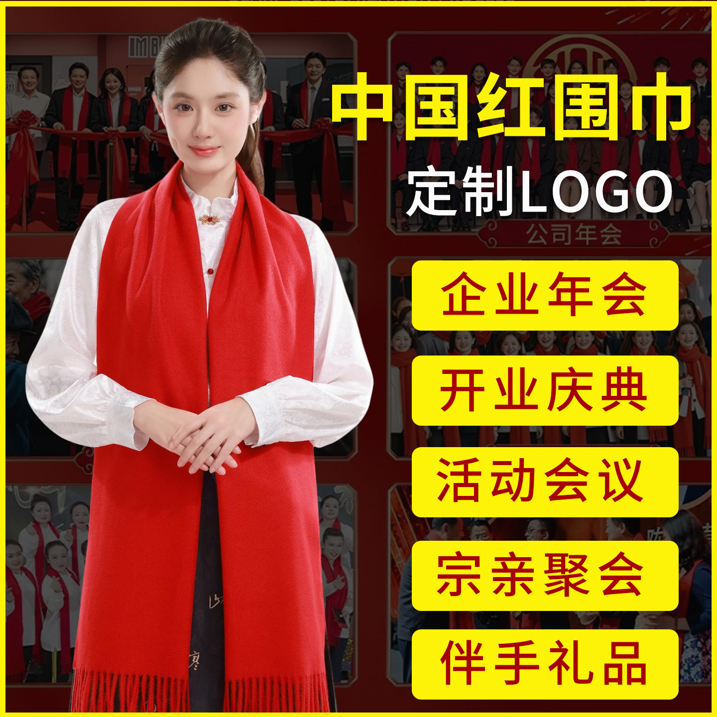 年会围巾定制大红仿羊绒中国风同学会开门红色企业活动LOGO围巾
