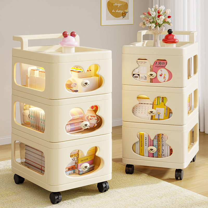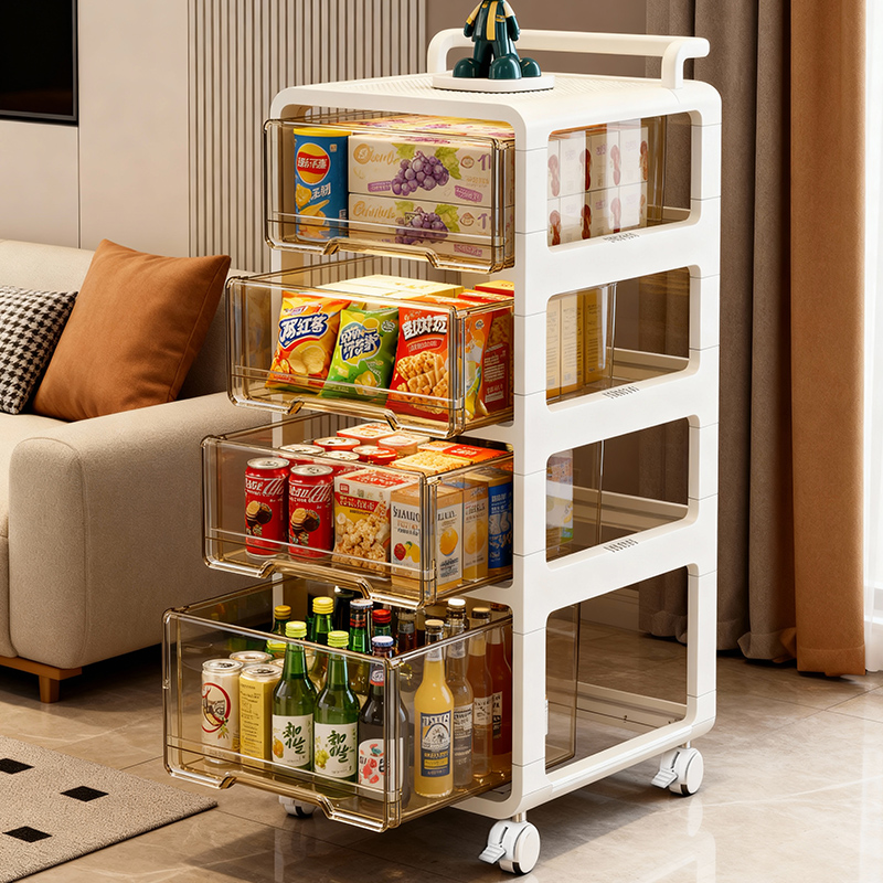 多层落地小推车置物架家用抽屉式收纳柜客厅零食玩具小推车储物柜