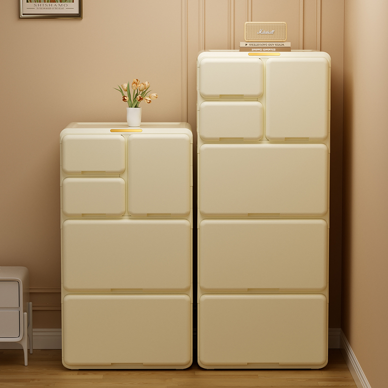 抽屉式收纳柜奶油风客厅卫生间多层塑料衣服夹缝落地储物柜大容量