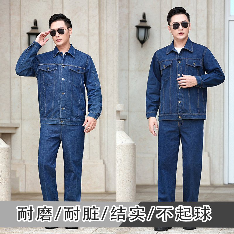 牛仔工作服套装男棉线厚款大口袋电焊工防烫耐磨车床劳保工作服男