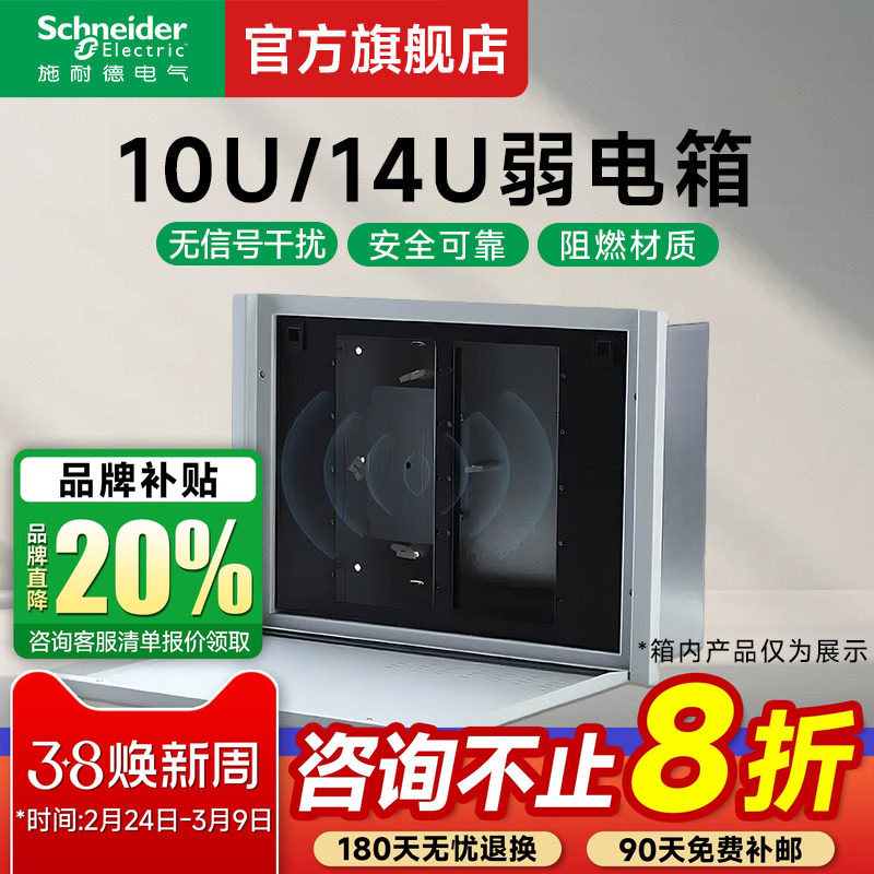 施耐德电气弱电箱网络语音视频模块暗装10U光纤箱14U多媒体箱视频