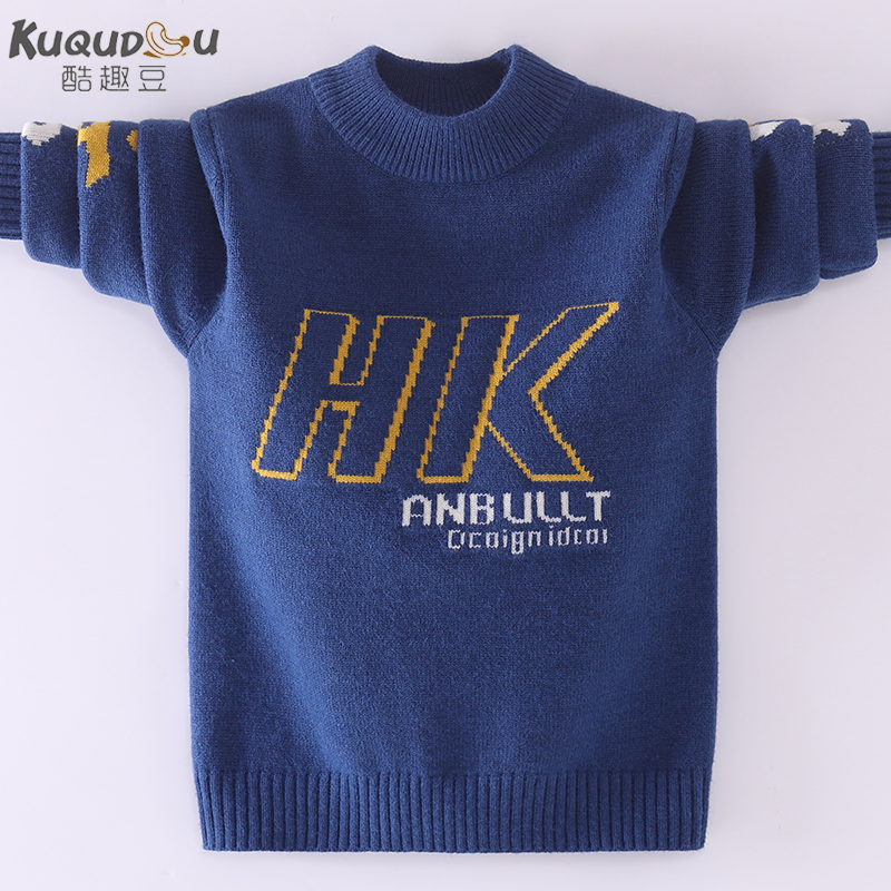 新款中大童毛衣混纺加厚男童毛衫男孩大童帅气儿童针织衫字母上衣