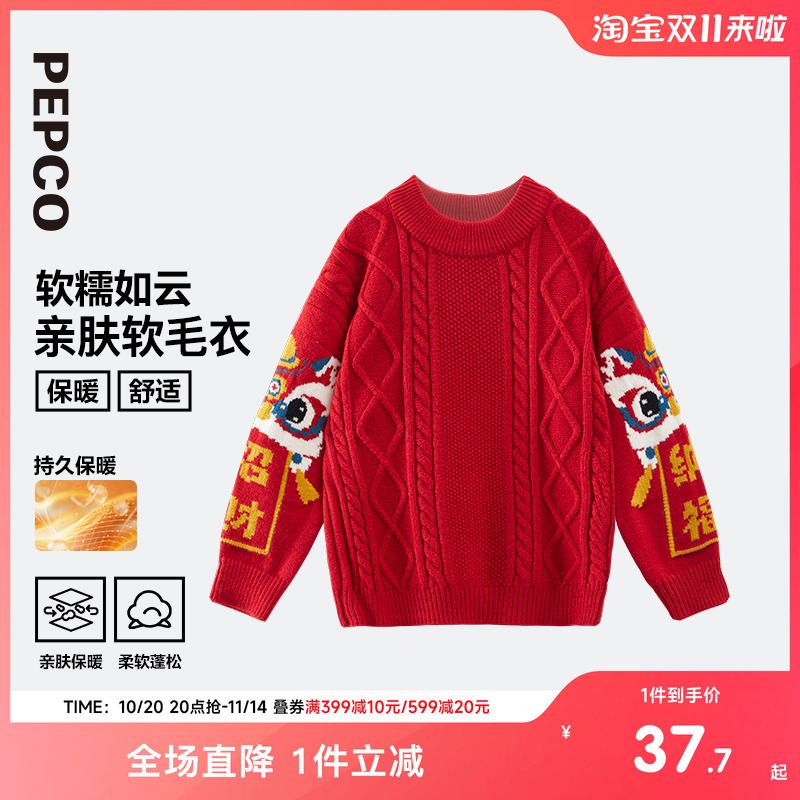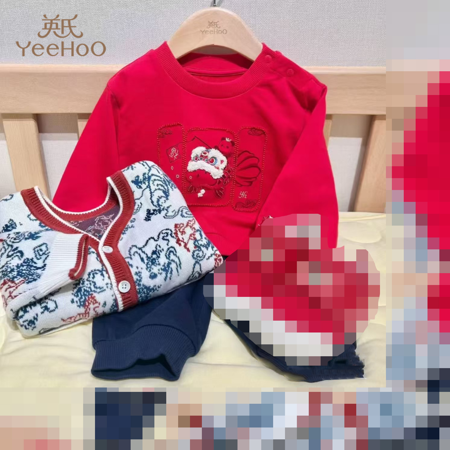 英氏儿童外套毛衫男宝男童毛衫外穿新年喜庆时尚新款针织衫长裤套